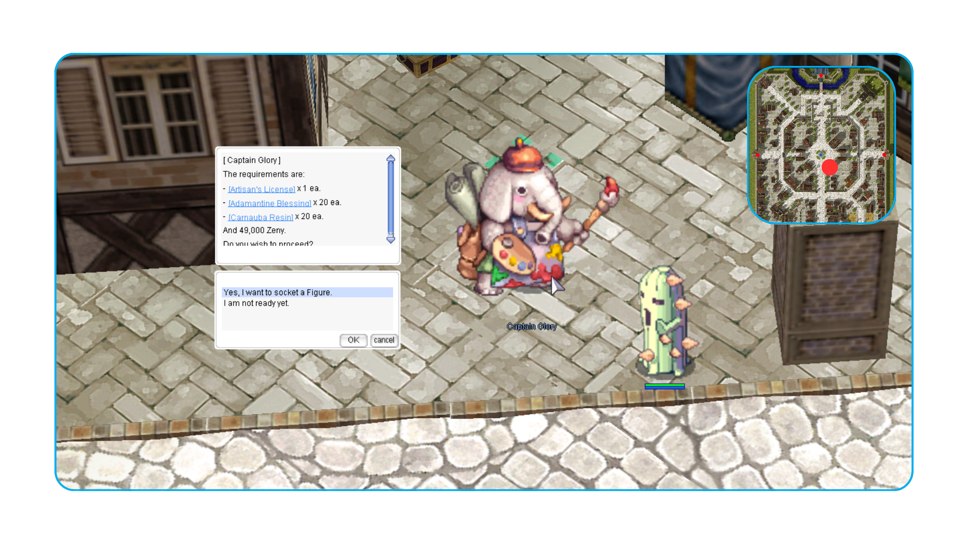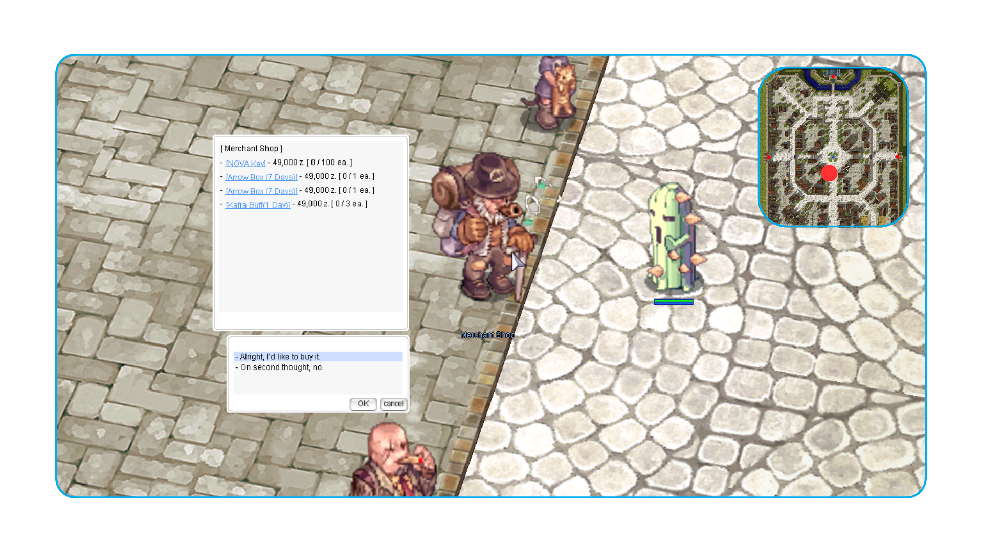 Encontre-o na cidade de Prontera, onde você pode trocar Zeny por itens exclusivos e valiosos.
