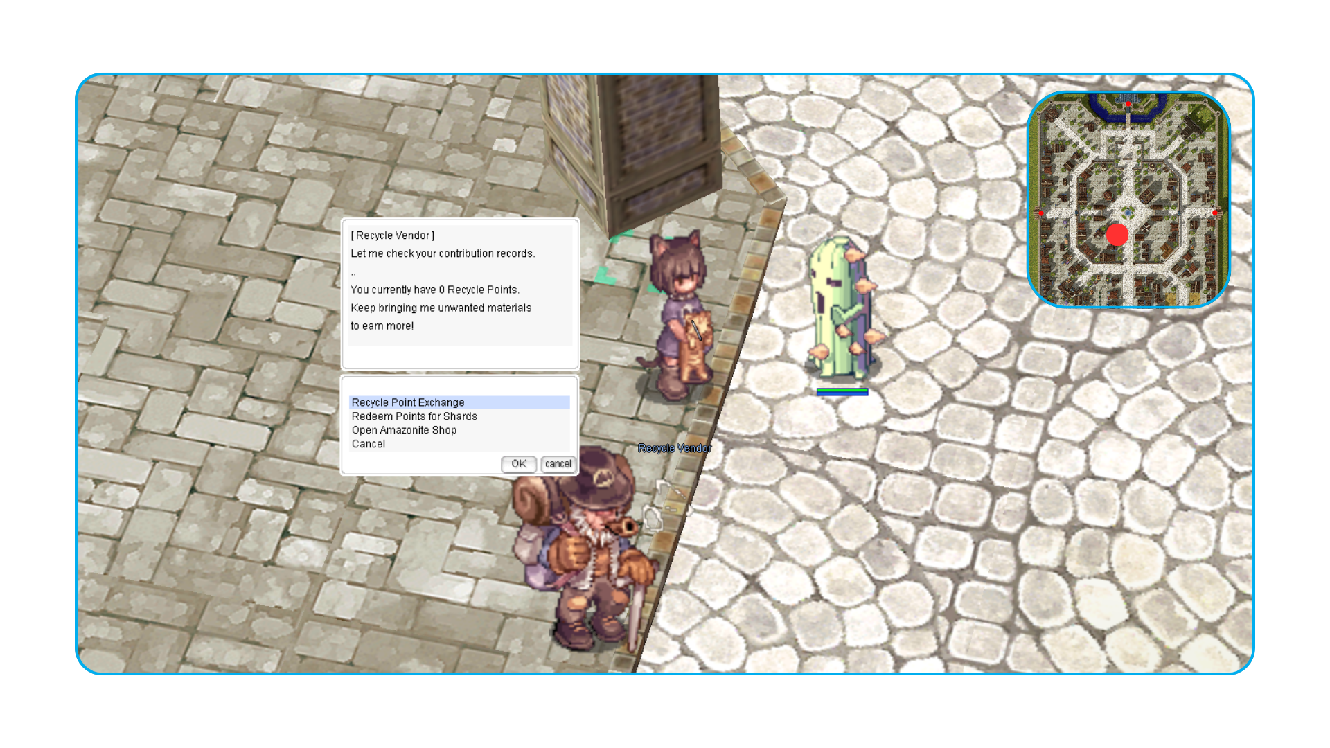 1. Fale com o NPC Recycle Vendor em prontera 142/172
