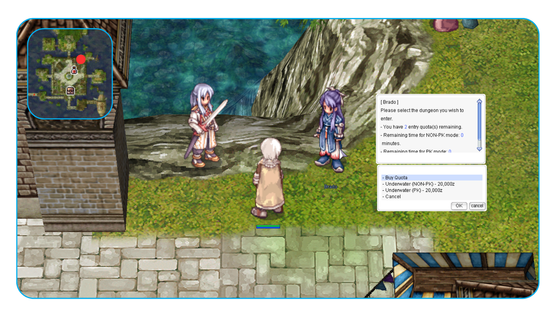 ③ Selecione a masmorra desejada: Izlude Underwater (NÃO-PK) ou Izlude Underwater (PK)