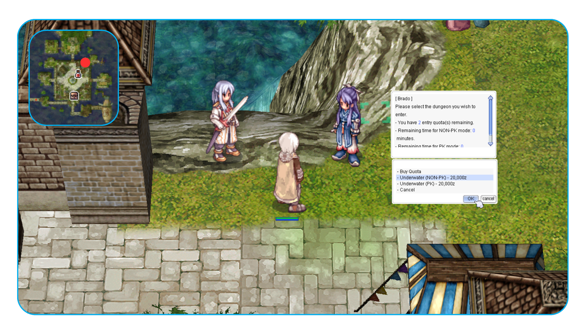 ③ Selecione a masmorra desejada: Izlude Underwater (NÃO-PK) ou Izlude Underwater (PK)