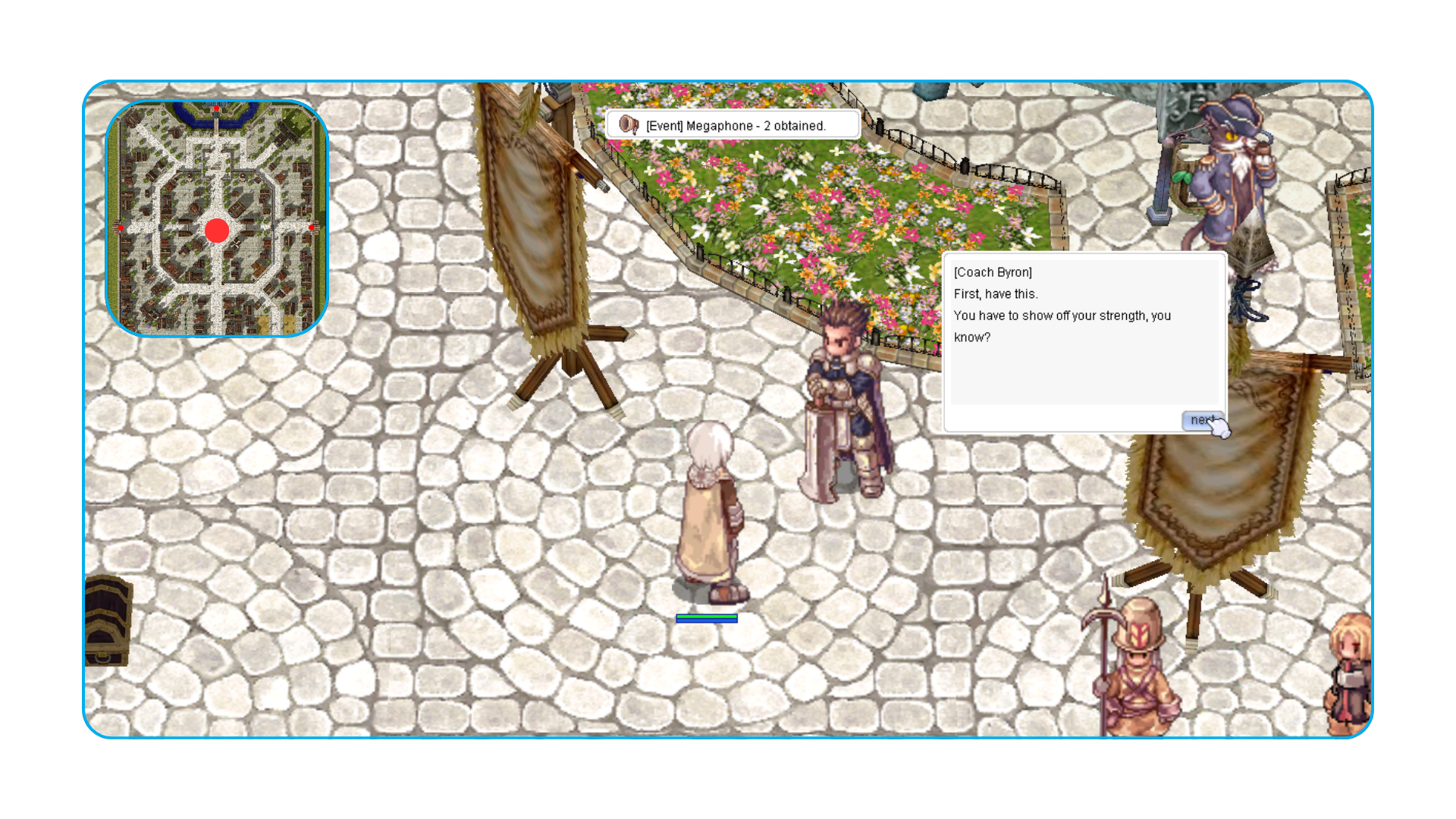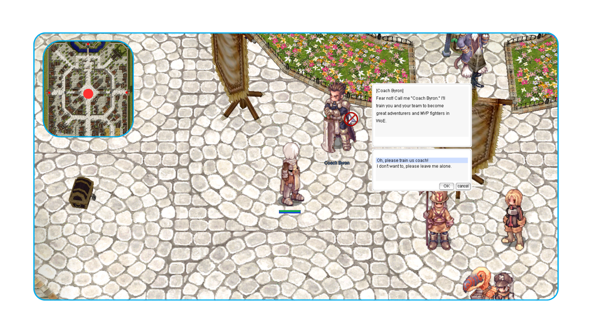 Passo 1: O Mestre da Guilda fala com o Coach Byron em prontera 149,192 para iniciar a missão.