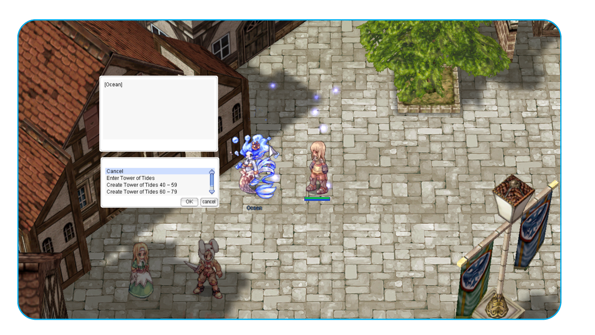 Fale com o NPC Ocean para começar. O Líder do Grupo pode criar a instância baseada em 3 faixas de nível: