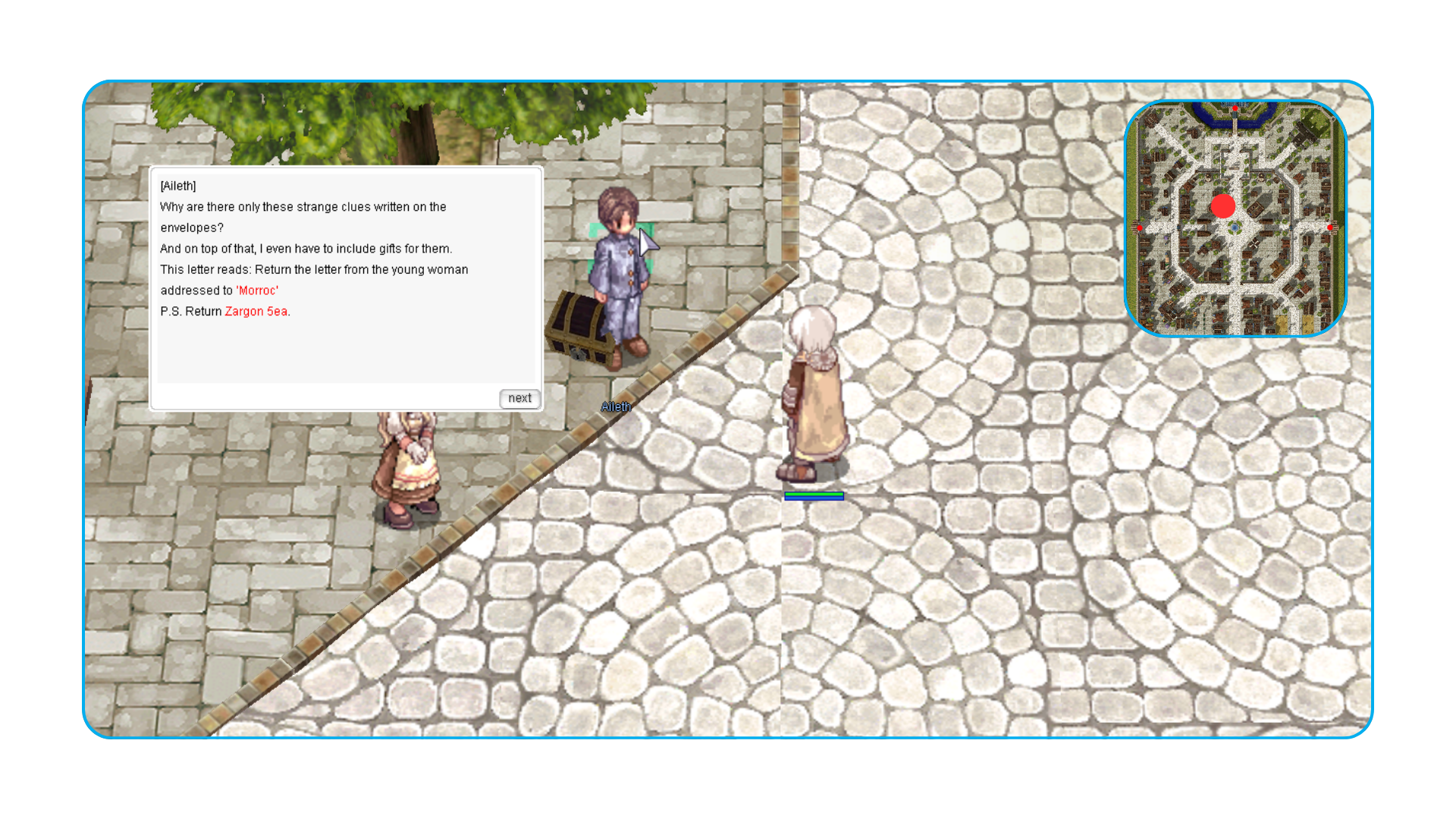 3) Entregue para Aileth em Prontera (145, 230)
