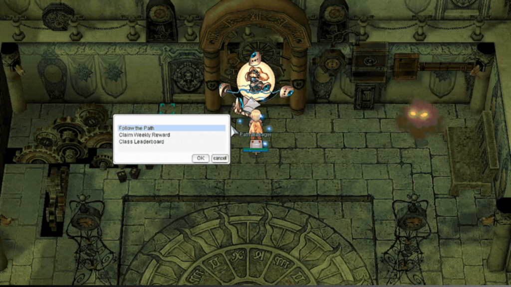 • Fale com o NPC: Path Manager em Clock Tower 1F (c_tower1 200, 214)